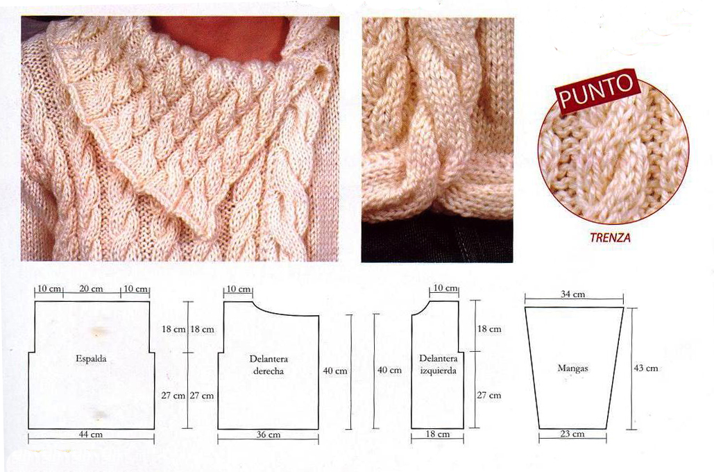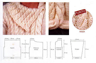 6.    Los esquemas o tipo de punto  empleados también modifican las medidas, por ejemplo, las trenzas tienden a angostar el tejido.